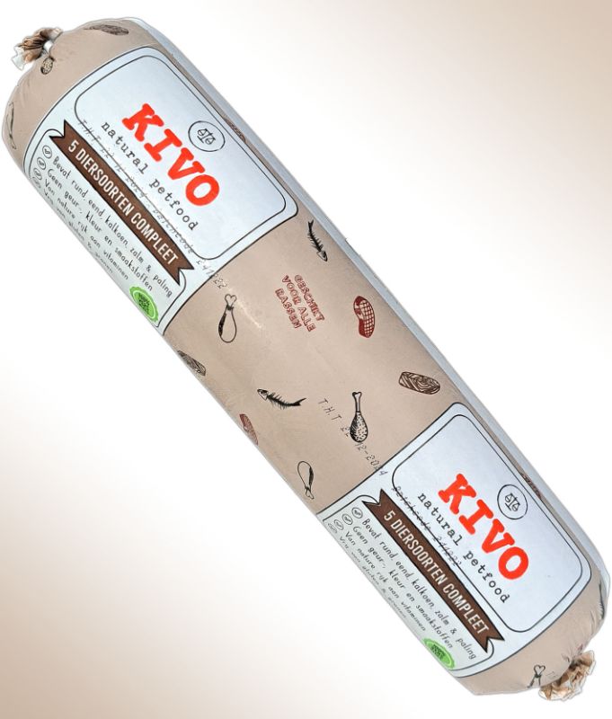 – 65% spiervlees (rundertrimmings, runderhart, kalkoenvlees, zalmlijkven, palinglijven)